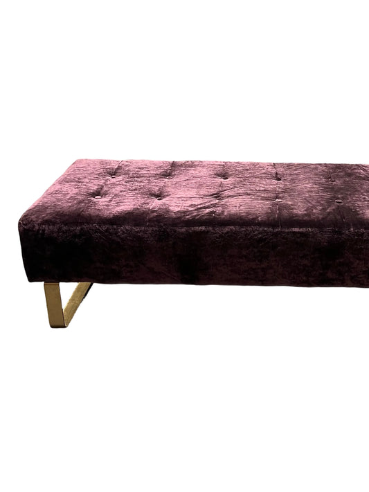 Purple Velvet Chesterfield Ottoman Cushioned Large Entryway Bedroom Footstool Bench (Pre-Loved)