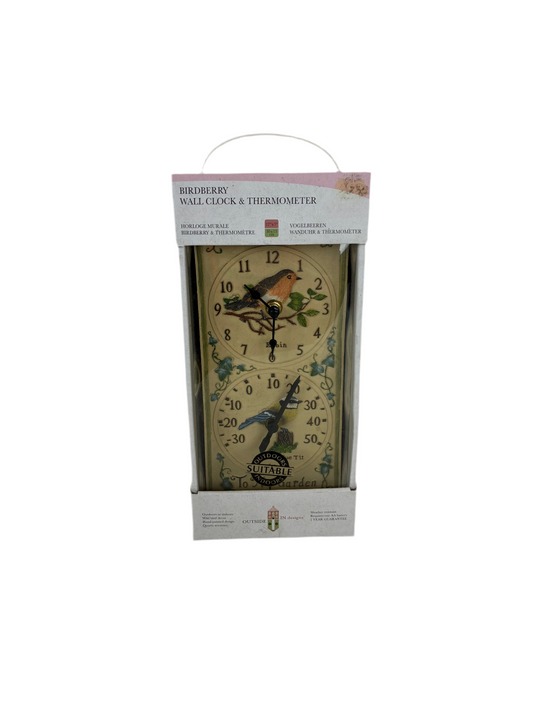 Birdberry Wall Clock & Thermometer (New)